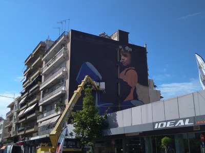 Αποκαλύπτεται σιγά σιγά η δεύτερη τοιχογραφία που ξεκίνησε να δημιουργείται από την περασμένη Τετάρτη στην οδό κανάρη 20, στο πλαίσιο του Street Art Festival.