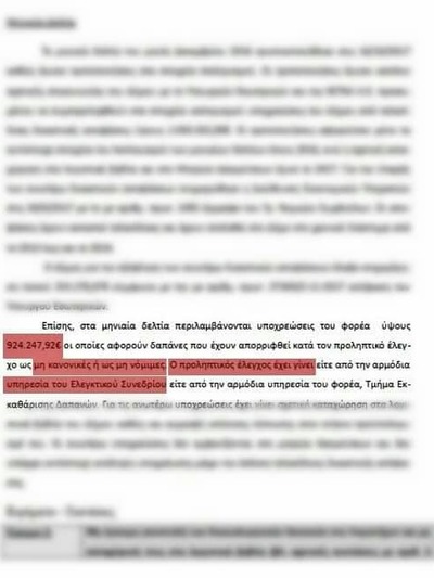 Τo τρίτο πολύ σημαντικό είναι ότι ο έλεγχος στη σελίδα 38 αναφέρει ότι εντοπίστηκαν δαπάνες ύψους 924.247,92 ευρώ δηλαδή περίπου 1 εκατομμύριο ευρώ οι οποίες αφορούν δαπάνες που έχουν απορριφθεί από τα Ελεγκτικό Συνέδριο ως μη κανονικές ή ως μη νόμιμες.