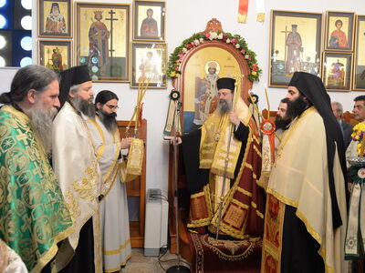 - Ἀνήμερα, την Κυριακή 19.5.2019, ἐτελέσθη Ἀρχιερατική Θεία Λειτουργία, ὑπό τοῦ Θεοφιλεστάτου Ἐπισκόπου Κερνίτσης κ. Χρυσάνθου, ὁ ὁποῖος μίλησε ἐπικαίρως, ἀναφερθείς στό εὐαγγελικό Ἀνάγνωσμα καί στήν ἐπέτειο τῶν ἐγκαινίων τοῦ Ἱεροῦ Ναοῦ.