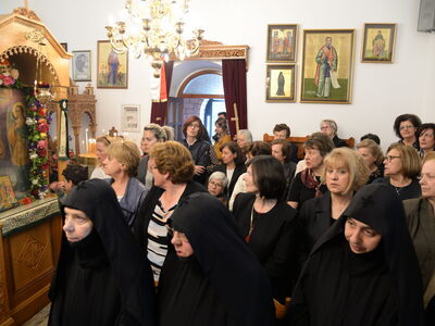 Ἰδιαίτερη ἀναφορά ἒκανε στήν κ. Σαββούλα Καραθανασοπούλου, ἡ ὁποία μέ θυσιαστικό πνεῦμα καί αὐταπάρνηση προσφέρει τά μέγιστα στόν Ἱερό Ναό.
