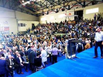 Οι πρώτες φωτογραφίες από τη συγκέντρωση του Κυριάκου Μητσοτάκη στο κλειστό της ΕΑΠ