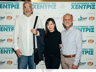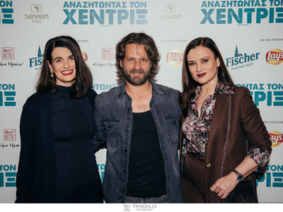 Oι πρωταγωνιστές της ταινίας «ΑΝΑΖΗΤΩΝΤΑΣ ΤΟΝ ΧΕΝΤΡΙΞ», Αδάμ Μπουσδούκος και Βίκυ Παπαδοπούλου με τον σκηνοθέτη Μάριο Πιπερίδη.