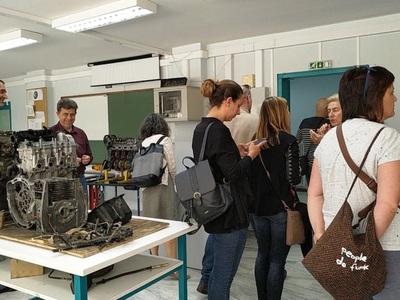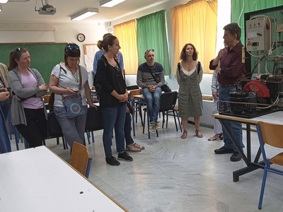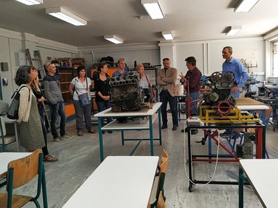 Οι εννέα καθηγητές έδειξαν ιδιαίτερο ενδιαφέρον για τα εργαστήρια του μηχανολογικού τομέα και σχολίασαν θετικά τον τρόπο οργάνωσής τους.