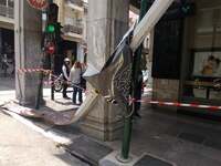 Αυτά είναι όσα άφησε πίσω του το λεωφορείο του αστικού ΚΤΕΛ της Πάτρας που τα ξημερώματα ακολούθησε τρελή πορεία επί της Αγίου Νικολάου, όταν σύμφωνα με πληροφορίες λύθηκε το χειρόφρενο και από την οδό Κανακάρη κατέληξε στην Κορίνθου. Στο … διάβα του παρέσυρε κάδους απορριμμάτων και σταθμευμένα οχήματα για να σταματήσει στον στύλο κάμερας της τροχαίας, ευτυχώς χωρίς να υπάρξει τραυματισμός.