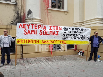 Κινητοποίηση έξω απο τα δικαστήρια με πανό, από ομοεθνείς του