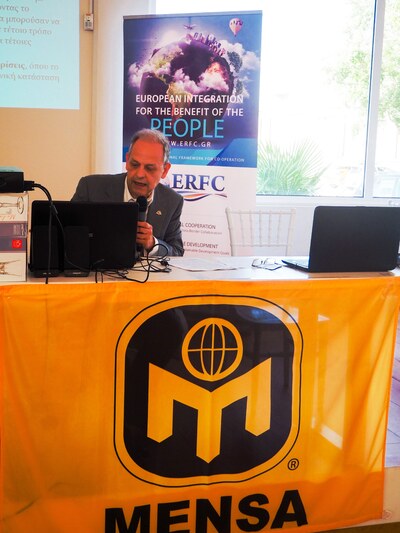 Παρών στην εκδήλωση ο πρόεδρος της Ελληνικής MENSA, κ. Χρ. Αποστολίδης, ο οποίος ενεχείρησε στους μαθητές τις βεβαιώσεις παρακολούθησης, μιλώντας σ ένα κατάμεστο από μαθητές και γονείς ακροατήριο δεν έκρυψε τη χαρά του, που «αποκτά σάρκα και οστά το όραμά του, να βγουν από το περιθώριο της εκπαίδευσης και της ελληνικής κοινωνίας τα παιδιά με ειδικές ικανότητες και χαρίσματα και συνεπώς ανάγκες, δεδομένου ότι, υπερέχουν κατά πολύ του γενικού μέσου όρου της». Και επεσήμανε: «Η Ελληνική MENSA, ως μη κερδοσκοπικός οργανισμός, που έχει ως σκοπό την αναγνώριση, υποστήριξη, έρευνα και προώθηση της ανθρώπινης ευφυΐας, στηρίζει την αδιάλειπτη κοινωνική προσφορά της στον εθελοντισμό των μελών της, τα οποία από το 2009 έχουν 20πλασιαστεί, φθάνοντας τα 1000. Μέσα από την MENSA ανοίγεται ένα ελεύθερο πεδίο έκφρασης, ώστε να πάρεις μέρος αλλά και να οργανώσεις δράσεις. Να διαμορφώσεις ιδέες που θα προσφέρουν στο κοινωνικό σύνολο. Να αξιοποιήσεις τις γνώσεις και τις δεξιότητες σου, να εφαρμόσεις τις ιδέες σου και να αποκτήσεις εμπειρία».
