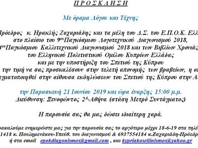 Η απονομή θα γίνει στις 21/6/2019 στην Αθήνα