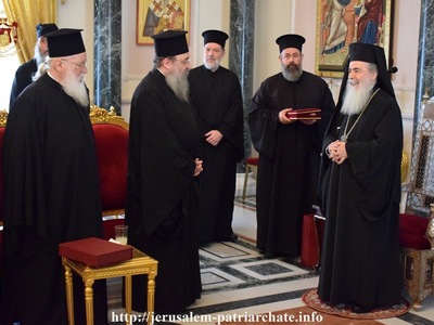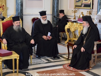 Ο Μακαριότατος Πατριάρχης Ιεροσολύμων μίλησε με θερμά λόγια για τον σεβασμιότατο Μητροπολίτη Πατρών, και επαίνεσε την αγάπη του Ιεράρχου αλλά και του Ιερού Κλήρου της Αποστολικής Εκκλησίας των Πατρών και του ευσεβούς Πατραϊκού Λαού, προς τα Πανάγια Προσκυνήματα, για την παρουσία τους στους Αγίους Τόπους και την προς το Πατριαρχείο Ιεροσολύμων και την Αγιοταφιτικήν Αδελφότητα, συμπαράσταση και επιστήριξη.