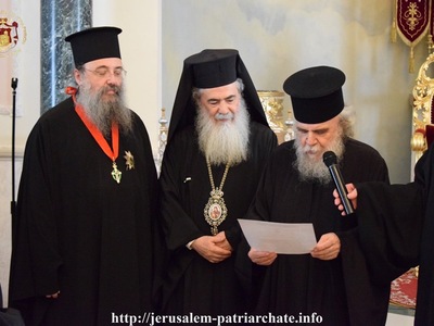 Στην αντιφώνησή του ο Μητροπολίτης Πατρών κ. Χρυσόστομος ευχαρίστησε ευγνωμόνως τον Μακαριότατο Πατριάρχη Ιεροσολύμων για την υψίστη προς το πρόσωπό του τιμή, η οποία είναι τιμή δια του προσώπου του και προς τον Ιερό Κλήρο και τον ευσεβή Λαό της Ιεράς και Αποστολικής Μητροπόλεως των Πατρών και διεβεβαίωσε τον Μακαριότατο ότι τόσο ο ίδιος προσωπικά όσο και η Ιερά Μητρόπολη Πατρών όπως μέχρι τώρα, έτσι και μετά ταύτα θα είναι στο πλευρό του Μακαριοτάτου και της Αγιοταφιτικής Αδελφότητος, διότι στην Αγία Γη φυλάσσουν τα ιερά και Πανάγια Προσκυνήματα με την θυσιαστική παρουσία τους και με αυταπάρνηση και φρυκτωρούν για τα απαράγραπτα εθνικά μας δίκαια, όπως αναφέρει η σχετική ανακοίνωση.