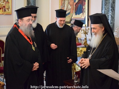 Παρουσία πλήθους προσκυνητών, την Τρίτη 4 Ιουνίου 2019 στην μεγάλη αίθουσα του Θρόνου του Πατριαρχείου Ιεροσολύμων, ο Μακαριότατος Πατριάρχης Ιεροσολύμων κ.κ. Θεόφιλος απένειμε προς τον σεβασμιότατο Μητροπολίτη Πατρών κ. Χρυσόστομο που βρίσκεται στους Αγίους Τόπους, την τιμή του Ανωτέρου Ταξιάρχου του Τάγματος των Ορθοδόξων Σταυροφόρων του Παναγίου Τάφου και περιέβαλε τον σεβασμιότατο κ. Χρυσόστομο με το οικείο παράσημο, ήτοι τον Χρυσό Σταυρό μετά στέμματος, στεφάνης και αστέρος, ως αναφέρεται στην σχετική περγαμηνή.
