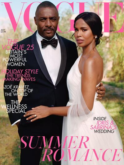 Ο Άγγλος ηθοποιός, Ίντρις Έλμπα και η Σαμπρίνα Ντάουρα ζουν τη χαρά των νεονύμφων που αποτυπώνεται στη φωτογράφιση που έκαναν για το ειδικό τεύχος Vogue για τον γάμο