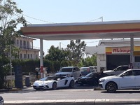 Τις εντυπωσιακές εικόνες των πανάκριβων supercars κατέγραψαν με τα κινητά τους τηλέφωνα, όσοι πρόλαβαν να τα δουν σταθμευμένα, είτε να ανεφοδιάζονται σε πρατήριο της Ακτής Δυμαίων.