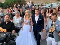 Ο Στράτος Τζώρτζογλου και η Σοφία Μαριόλα στο μικρό εκκλησάκι του Τιμίου Σταυρού στο Ακρωτήρι Χανίων, ορκίστηκαν ενώπιον Θεού και ανθρώπων αιώνια πίστη και αγάπη. Το μυστήριο τέλεσε ο Μητροπολίτης Κυδωνίας και Αποκορώνου Δαμασκηνός.