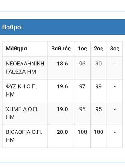Πιο συγκεκριμένα έγραψε 20 στη Βιολογία, 19 στην Χημεία, 19,6 στην Φυσική και 18,6 στην Έκθεση.