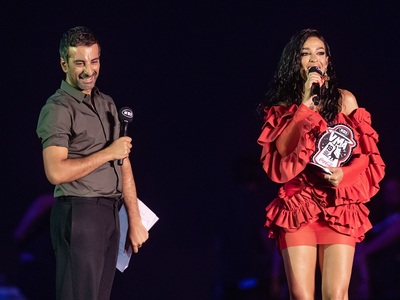 Αφού λικνίστηκε με λάτιν ρεπερτόριο φορώντας ένα άκρως αποκαλυπτικό βινίλ, κατακόκκινο κοστούμι ενθουσιάζοντας τους απανταχού θαυμαστές της και κάνοντας θραύση στο ίντερνετ, ανέβηκε στο stage για να παραλάβει δυο βραβεία, το Mad Radio και Best Female Modern με επίσης κόκκινη δημιουργία Stelios Koudounaris.