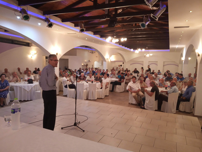 Στο κατάμεστο από κόσμο κέντρο συνεστιάσεων «Τα πεύκα» ο πρ. Γ.Γ. του Υπουργείου Δικαιοσύνης, με λόγο άμεσο και κατανοητό παρουσίασε στους Αχαγιώτες πολίτες τους βασικούς άξονες του προγράμματος της Νέας Δημοκρατίαςκαι ξεδίπλωσε με αδρές γραμμές το σχέδιο της νέας Κυβέρνησης του Κυριάκου Μητσοτάκη προκειμένου να οδηγήσει την Ελλάδα περιοχή μας στην οδό της εξωστρέφειας, της προσέλκυσης επενδύσεων και της οικονομικής ανάκαμψης.