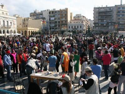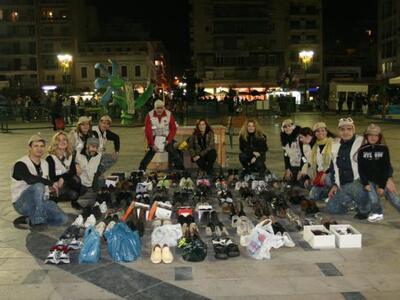 Το απόγευμα του Σαββάτου στην πλατεία Γεωργίου τα πληρώματα έφεραν 127 ζευγάρια παπούτσια νούμερο 41-44, που είχαν ζητηθεί από τη γραμματεία Ένταξης Μεταναστών.