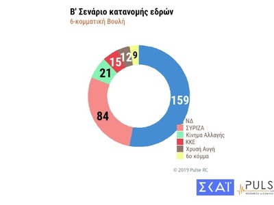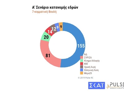 Με τα σημερινά δεδομένα πάντως η Pulse εκτιμά πως η Πειραιώς θα εξασφαλίσει καθαρή πλειοψηφία στην επόμενη Βουλή και στα δύο σενάρια που πραγματεύεται. Στο πρώτο σενάριο, όπου τόσο η Ελληνική Λύση όσο και το ΜέΡΑ25 εισέρχονται σε επτακομματικό κοινοβούλιο, η Νέα Δημοκρατία εκτιμάται πως θα συγκεντρώσει 155 έδρες. Στο δεύτερο σενάριο, όπου η Βουλή είναι εξακομματική, η ΝΔ διευρύνει την πλειοψηφία της σε 159 βουλευτές