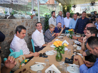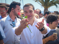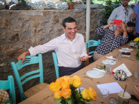 Σε κλίμα πολύ πιο χαλαρό ο πρωθυπουργός έφτασε στο Λαύριο λίγο μεταά τις 12 το μεσημέρι συνοδευόμενος από στελέχη και φίλους του κόμματος και στη συνέχεια κατευθύνθηκε σε ψαροταβέρνα της περιοχής.