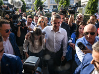Συνοδευόμενος από την κόρη του Δάφνη και τη σύζυγό του Μαρέβα βρέθηκε αμέσως μετά την δημοσιοποίηση των exit poll στα κεντρικά γραφεία του κόμματος ο Κυριάκος Μητσοτάκης. Πατέρας και κόρη χαμογελαστοί κατέφθασαν χειροκροτούμενοι την ώρα που στο σημείο είχε συγκεντρωθεί ήδη αρκετός κόσμος.