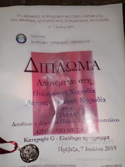 διεύθυνση της Δήμητρας Πίτσου- Διαμαντοπούλου και τη Μαρίνα Μυλωνά στο πιάνο, βραβεύτηκε με ασημένιο μετάλλιο στην κατηγορία G, που έλαβε μέρος, αποδεικνύοντας για μία ακόμα φορά την επιμελημένη εργασία που επιτελείται και σε αυτό το τμήμα του Οργανισμού.