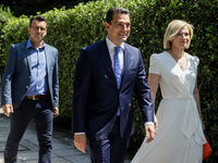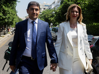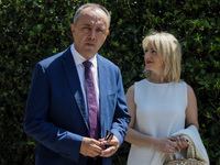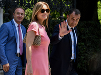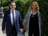 Σκούρα μπλε μπλούζα επέλεξε για σήμερα η σύζυγος του Πρωθυπουργού Μαρέβα Γκρομπόβσκι. Στα γαλάζια η Ευγενία Μανωλίδου, σύζυγος του Υπουργού Ανάπτυξης και Επενδύσεων.