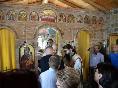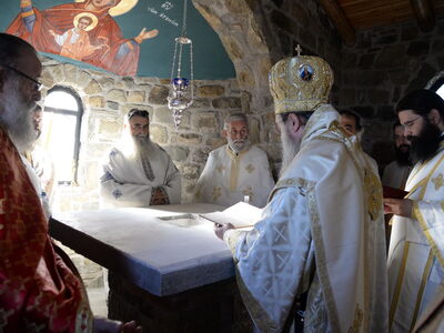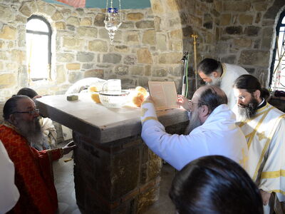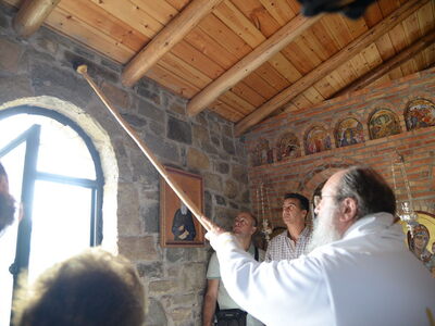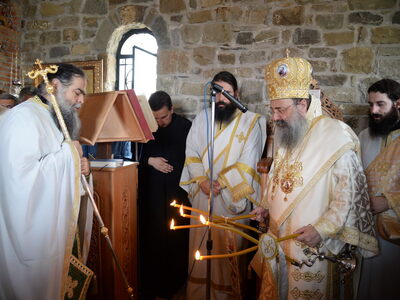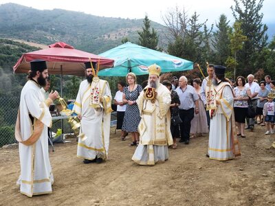 Η Ιερά τελετή των Εγκαινίων και η πρώτη Θεία Λειτουργία, ετελέσθησαν από τον Σεβασμιότατο Μητροπολίτη Πατρών κ.κ. Χρυσόστομο σέ κλίμα βαθιάς συγκινήσεως και με την συμμετοχή πλήθους πιστών. Στις ιερές λατρευτικές τελετές, μετείχε και ο νέος Δήμαρχος Ερυμάνθου κ. Θεόδωρος Μπαρής.