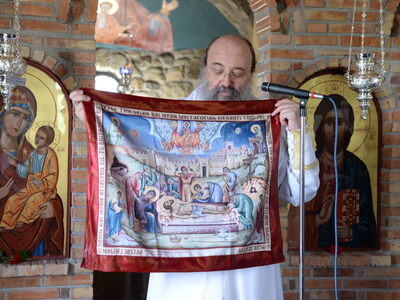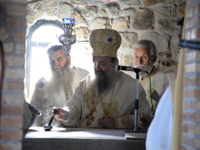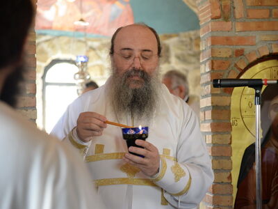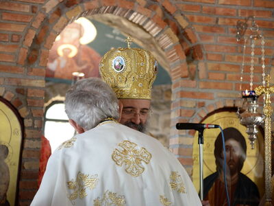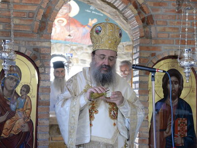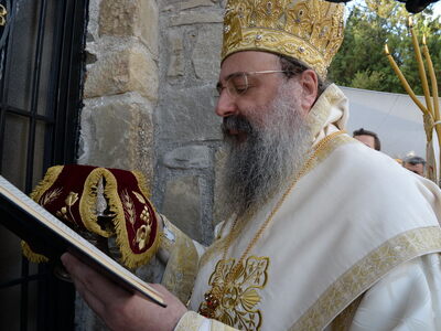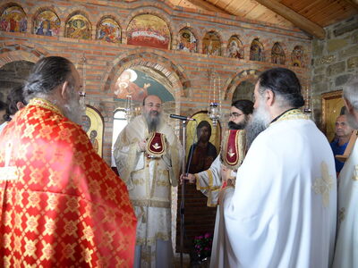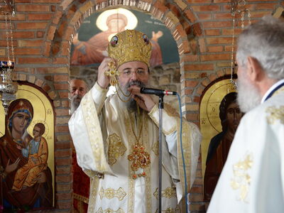 Ο Σεβασμιότατος μίλησε για την μεγάλη ευεργεσία τού Θεού πηρός τούς ανθρώπους, να έχομε τούς Αγίους πρεσβευτάς και μεσίτας πηρός Αυτόν και εν προκειμένω τού Οσίου Παϊσίου, ο οποίος ήστραψεν ως φωστήρ παμφαής εν εσχάτοις τοίς έτεσι καί προέτρεψε εις αγίαν καί ενάρετον βιοτήν καί πολιτείαν, ώστε νά επιτύχωμε τόν αγιασμόν καί τήν σωτηρίαν. Επίσης, επήνεσε τήν ευσέβεια τών κτητόρων τού Ιερού Ναού.