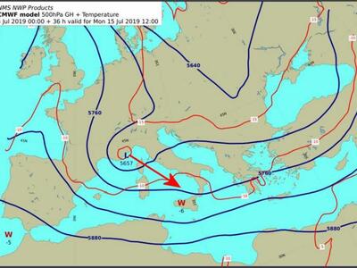 Από τον κόλπο της Γένοβας τη Δευτέρα 15/7 από το μεσημέρι και μετά δημιουργείται ένα χαμηλό στην ανώτερη ατμόσφαιρα το οποίο θα κινηθεί ανατολικά και την Τρίτη και Τετάρτη θα προκαλέσει νέα μεταβολή του καιρού στη χώρας μας με τοπικά έντονη αστάθεια.