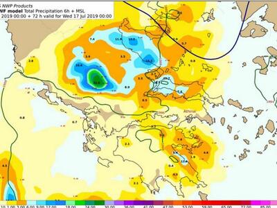 Στο βίντεο που ακολουθεί παρουσιάζονται οι προβλεπόμενες βροχοπτώσεις από τις μεσημεριανές ώρες της Κυριακής 14/07 έως και τις βραδινές ώρες της Τετάρτης 17/07/2019.