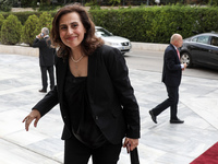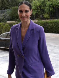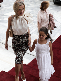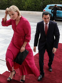 Υπέρκομψη με μαύρο κοστούμι και ψηλά μαύρα πέδιλα ήταν η Ελενα Ράπτη. Λευκό φόρεμα, από την άλλη, επέλεξε η νιόπαντρη Ελένη Καρβελά, που συνόδευσε τον σύζυγό της Κωνσταντίνο Μπογδάνο στην ορκωμοσία του. Στα ... ελληνικά χρώματα -λευκό και γαλάζιο η υφυπουργός Εργασίας Δόμνα Μιχαηλίδου.