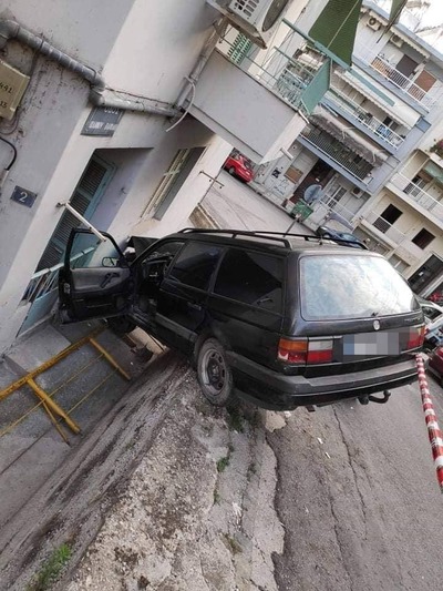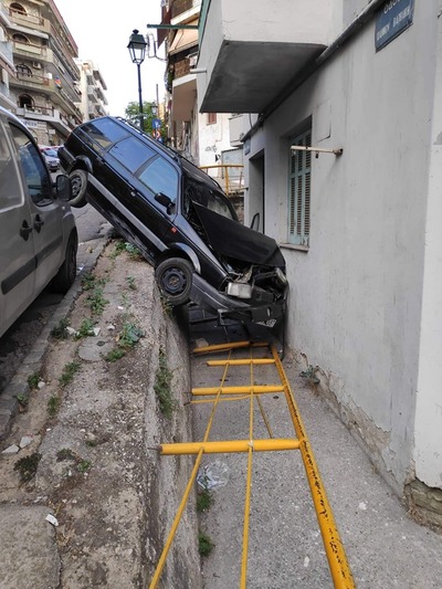 Τρελή πορεία ακολούθησε ένα αυτοκίνητο στην οδό Γκράτσιου στην Άνω Πόλη της Θεσσαλονίκης, όταν υπό άγνωστες μέχρι τώρα συνθήκες εξετράπη της πορείας του, με αποτέλεσμα να «φύγει σφαίρα» πάνω σε ένα σπίτι, παρασύροντας μάλιστα τα προστατευτικά κάγκελα του δρόμου.