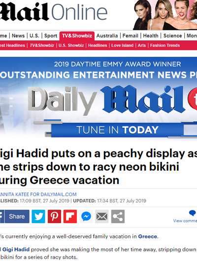 Για τις διακοπές της 24χρονης στην Ελλάδα γράφει και η Daily Mail.