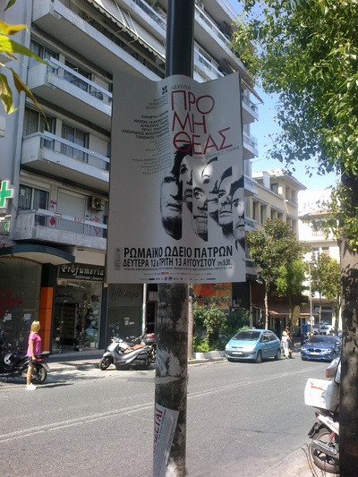 Ευρεία είναι η αφισοκόλληση για την παράσταση «Προμηθέας Δεσμώτης» του Αισχύλου που ανεβάζει το ΔΗΠΕΘΕ Πάτρας. Η πολυαναμενόμενη παράσταση αμέσως μετά την Επίδαυρο, θα έρθει στο Διεθνές Φεστιβάλ του Δήμου Πατρέων τη Δευτέρα 12 και την Τρίτη 13 Αυγούστου 2019 στις 9.30 το βράδυ στο Αρχαίο Ρωμαϊκό Ωδείο.