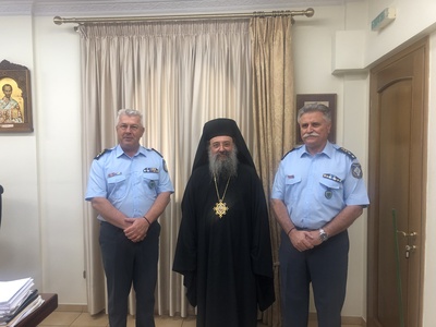 Ο νέος Γενικὸς Περιφερειακὸς Ἀστυνομικὸς Διευθυντὴς Δυτικῆς Ἑλλάδος, Ὑποστράτηγος κ. Νικόλαος Σπανουδάκης και ο νέος Ἀστυνομικὸς Διευθυντὴς Ἀχαΐας, Ταξίαρχος κ. Γεώργιος Μιχαλόπουλος επισκέφθηκαν τον σεβασμιότατο Μητροπολίτη Πατρῶν κ.κ. Χρυσόστομο, την Τετάρτη 7.8.2019 στὰ Γραφεῖα τῆς Ἱερᾶς Μητροπόλεως στην οδό Βότση προκειμένου να λάβουν τὴν εὐλογία του καὶ τὴν εὐχή του μὲ τὴν εὐκαιρία τῆς ἀναλήψεως τῶν νέων τους καθηκόντων.