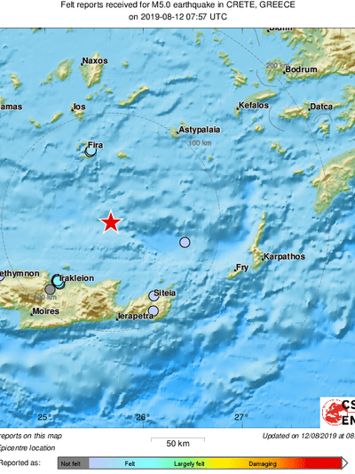 Ισχυρή σεισμική δόνηση έγινε αισθητή λίγο πριν τις 11 το πρωί της Δευτέρας στην ανατολική Κρήτη.