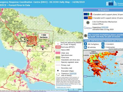 Ειδικότερα, για τη δασική πυρκαγιά που εκδηλώθηκε την 13η Αυγούστου στην Κεντρική Εύβοια, το Πυροσβεστικό Σώμα αναφέρει ότι βρίσκεται σε εξέλιξη και επιχειρούν 235 πυροσβέστες, 75 πυροσβεστικά οχήματα, 10 ομάδες πεζοπόρων τμημάτων, από την 1η, 2η, 6η, 7η Ε.Μ.Α.Κ., το Αρχηγείο του Πυροσβεστικού Σώματος, τις Περιφέρειες Πελοποννήσου και Δυτικής Μακεδονίας, το Μ.Ε.Τ.Π.Ε., καθώς και το Κινητό Επιχειρησιακό Κέντρο «ΟΛΥΜΠΟΣ». Στην αεροπυρόσβεση συμμετείχαν περιοδικά 7 αεροσκάφη και 7 ελικόπτερα. Επίσης, από νωρίς το απόγευμα σήμερα, συνδράμουν στην αεροπυρόσβεση 2 αεροσκάφη από Ιταλία, μετά από αίτημα στον Ευρωπαϊκό Μηχανισμό Πολιτικής Προστασίας (RescEU). Συνδρομή στο έργο της πυρόσβεσης παρέχουν: 2 ομάδες πεζοπόρων τμημάτων και 2 ελικόπτερα Ελληνικού Στρατού, 8 μηχανήματα έργου και 10 υδροφόρες της Περιφέρειας και των Ο.Τ.Α., η Δασική Υπηρεσία, το ΕΚΑΒ καθώς και 38 εθελοντές πυροσβέστες και 6 εθελοντικά πυροσβεστικά οχήματα. Ο συντονισμός της πυρκαγιάς γίνεται με 2 συντονιστικά ελικόπτερα του Πυροσβεστικού Σώματος και της Ελληνικής Αστυνομίας. Την πυρκαγιά συντονίζουν ο Αρχηγός του Πυροσβεστικού Σώματος καθώς και ο Γενικός Γραμματέας Πολιτικής Προστασίας.