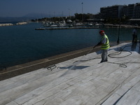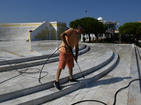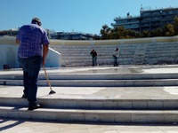 Οι εργασίες επαναλαμβάνονται σήμερα, διότι χθες, σχεδόν αμέσως μετά το τέλος των εργασιών, κάποιοι έσπευσαν να βανδαλίσουν και να βρωμίσουν ξανά το χώρο.