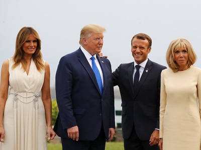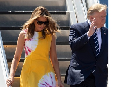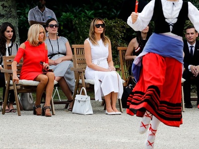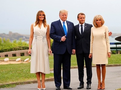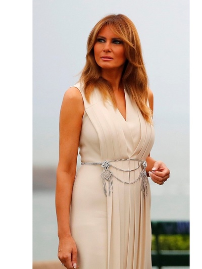 Καταιγιστικά φλας, στο παρασκήνιο της συνόδου G7 των ισχυρότερων ηγετών της υφηλίου στη Μπιαρίτζ της Γαλλίας,«κλέβει» με την πάντα επιβλητική παρουσία της η καλλονή σύζυγος του προέδρου των ΗΠΑ, Μελάνια Τραμπ. Παρέα με την Μπριζίτ Μακρόν αλλά και τις συζύγους των πρωθυπουργών Ιαπωνίας, Αυστραλίας, Χιλής αλλά και του προέδρου του ευρωπαικού συμβουλίου, παραδίδει μαθήματα ενημερωμένης κομψότητας από επώνυμα brands. H Mελάνια ταξίδεψε αεροπορικώς στη Γαλλία με στενό λευκό τζιν J Brand και ασπρόμαυρο τουίντ σακάκι Chanel, αλλά προσγειώθηκε με ένα πολύ φωτεινό ρούχο: ένα κίτρινο τζιν φόρεμα Calvin Klein με πολύ trendy tie dye σχέδια, συνδυασμένο με ψηλοτάκουνα γοβάκια Christian Louboutin.