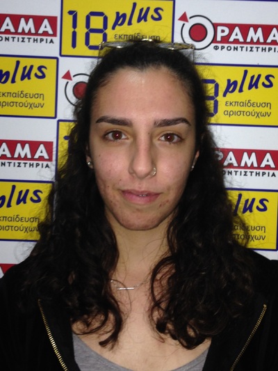 Είμαι πολύ χαρούμενη διότι πέρασα στην πρώτη σχολή της προτίμησής μου, στην Ψυχολογία Αθήνας. Αν έπρεπε με δυο λόγια να αναφέρω τους παράγοντες της επιτυχίας μου θα έλεγα πως αυτοί είναι η οργανωμένη και συστηματική μελέτη, οι πολλές ώρες διαβάσματος, η υπομονή και η επιμονή, οι προσωπικές θυσίες σε ό,τι έχει σχέση με τη διασκέδαση και τον ελεύθερο χρόνο. Ευχαριστώ τους γονείς μου και τους καθηγητές του Λυκείου και των Φροντιστηρίων ΟΡΑΜΑ / 18 PLUS, που με στήριξαν στον αγώνα μου.