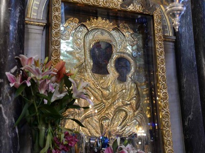 Εκεί φυλάσσεται η θαυματουργός και περίπυστος εικών της Παναγίας της Βρεφοκρατούσης, την οποία καθ’ ημέραν πλήθη πιστών προσκυνούν.