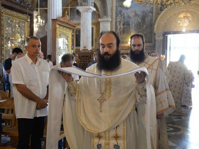 Στο τέλος της Θείας Λειτουργίας, ετελέσθη Ιερό Μνημόσυνο, υπέρ αναπαύσεως των ψυχών των αοιδίμων Αρχιερέων Γρηγορίου, ο οποίος εθεμελίωσε τον Ιερό Ναό και Μισαήλ οποίος τον εγκαινίασε, ως και των Ιερέων των εν ευλαβεία ιερατευσάντων εν αυτώ.»