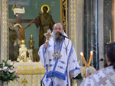 Ο Σεβασμιώτατος έκανε ειδική μνεία στην καταστροφική μανία του σεισμού, ο οποίος έπληξε τον Ναό το 2008 και στις επίπονες προσπάθειες για την αναστήλωσή του.