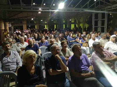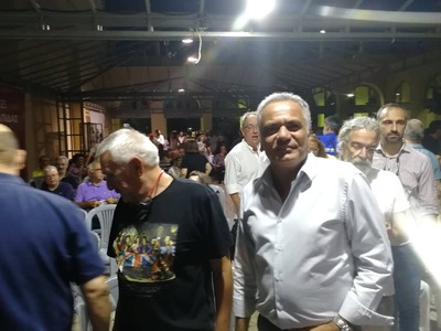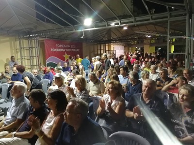 Στην Πάτρα, στο αίθριο του «Εσπέρου» μιλά ο γραμματέας του ΣΥΡΙΖΑ Πάνος Σκουρλέτης, ενώπιον ενός πυκνού ακροατηρίου. Η παρουσία του γραμματέα του κόμματος εντάσσεται στην οργανωτική ανασυγκρότηση του κόμματος, που εξήγγειλε ο πρόεδρός του Αλέξης Τσίπρας.