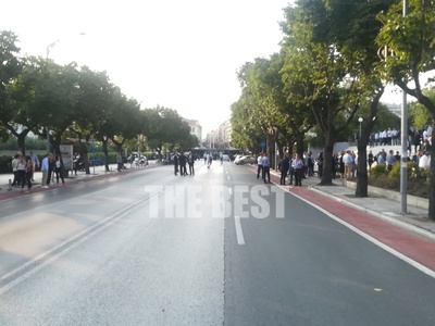 Γύρω από το Συνεδριακό Κέντρο «Ι. Βελλίδης» όπου μιλά ο πρωθυπουργός έχουν στηθεί κλούβες της ΕΛ.ΑΣ. και έχουν τοποθετηθεί κάγκελα, ενώ υπάρχουν μπλόκα της Αστυνομίας και συνεχείς έλεγχοι.