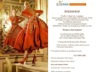 Μια ξεχωριστή και φαντασμαγορική όπως προμηνύεται, επίδειξη μόδας, διοργανώνει η Ελληνική Ένωση Αντιρρευματικού αγώνα (ΕΛΕΑΝΑ), τη Δευτέρα 16 Σεπτεμβρίου 2019 στις 19.30 στο Πάρκο της Ειρήνης με τίτλο "Κοιτάμε τη ζωή κατάματα".