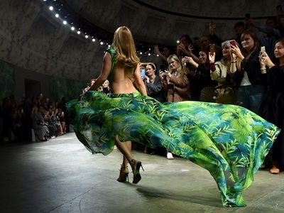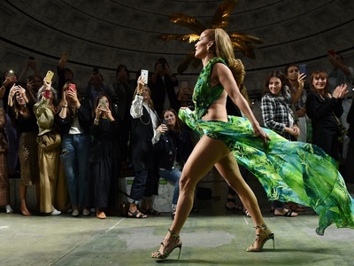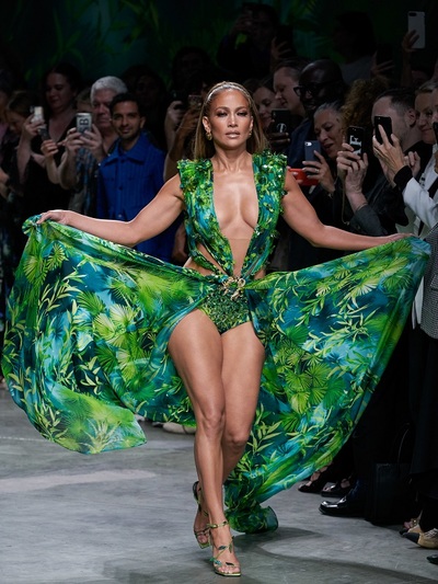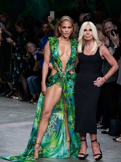 H 50χρονη λατίνα super star Τζένιφερ Λόπεζ με αντίτυπο του θρυλικού εμπριμέ φόρεματος Versace από τα Grammy’s του 2000 αναστάτωσε το Μιλάνο. Αφήνοντας ημίγυμνες τις διάσημες καμπύλες της, τόλμησε να ξαναφορέσει αυτή την τόσο προκλητική, εξωτική τουαλέτα 20 ολόκληρα χρόνια μετά, πιο σίγουρη από ποτέ για τον εαυτό της. «Ηταν μια μοναδική στιγμή. Μπορεί κάποιος να μην ξέρει τη μουσική και τα τραγούδια μου αλλά αυτό το φουστάνι το ξέρει» δήλωσε η αγέραστη ντίβα στο πλευρό της Ντονατέλα Βερσάτσε. (Το φόρεμα ήταν το πιο δημοφιλές ερώτημα αναζήτησης στα χρονικά του Google εκείνη την εποχή, το οποίο μετρούσε μόλις δύο χρόνια λειτουργίας). Συγκεκριμένα, η J Lo ήταν gest star στο φινάλε του Versace Show για άνοιξη- καλοκαίρι 2020 (το οποίο επένδυσε στο μαύρο χρώμα, στα γραφιστικά και jungle prints) τολμώντας να αναδείξει ακάλυπτα τα πόδια της από την κορυφή ως τα νύχια, όλη την πλάτη της και με ένα ντεκολτέ ανοιχτό ως την κοιλιά. Περπατώντας με φοβερή αυτοπεποίθηση ανέμιζε τη φούστα της τουαλέτας ψηλά. Το μακιγιάζ της ήταν σε γήινους, διακριτικούς τόνους. Με αυτή της την εμφάνιση μάλιστα κατόρθωσε να επισκιάσει στην ίδια επίδειξη μια άκρως sexy περιβολή της πολύ νεώτερής της Ρωσίδας καλλονής Ιρίνα Σάικ. Ανάμεσα στο κοινό Κιάρα Φεράνι, Ρόζι Χάντιγκτον, Αννα ντελο Ρούσο.