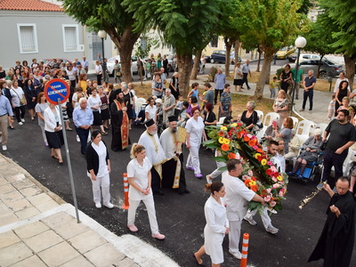 Ακολούθησε η λιτάνευση της εικόνας της Αγίας Ευφροσύνης, στους θαλάμους των περιθαλπομένων και στην πλατεία Παντοκράτορος, σε συγκινητικό κλίμα.
