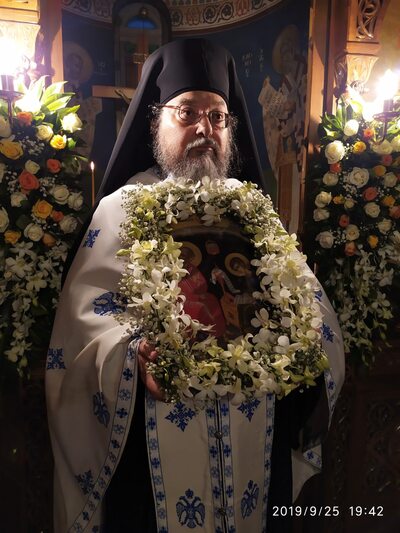 Ἀνήμερα, 26.9.2019, τελέστηκε Ἀρχιερατικὴ Θεία Λειτουργία, ὑπὸ τοῦ Σεβασμιοτάτου Μητροπολίτου Πατρῶν κ.κ. Χρυσοστόμου, μὲ τὴν συμμετοχὴ πλήθους λαού.
