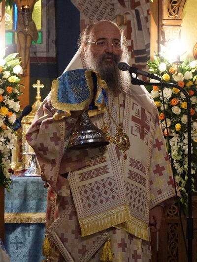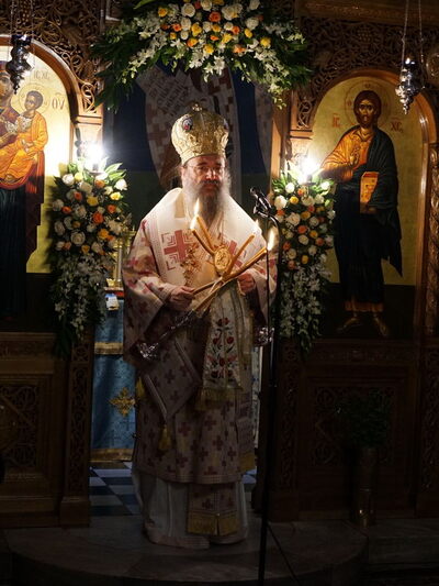 Πρὸ τῆς ἀπολύσεως, ο κ.κ. Χρυσόστομος εὐχαρίστησε καὶ ἐπαίνεσε τὸν Ἐφημέριο τοῦ Ἱεροῦ Ναοῦ, πανοσιολογιώτατο Ἀρχιμ. π. Γαβριὴλ Χριστόπουλο, ὃλους τοὺς Ἱερεῖς καὶ τοὺς Διακόνους ποῦ τελοῦν τὶς καθημερινὲς Ἱερὲς Ἀκολουθίες, ὡς καὶ τούς συνεργάτας τοῦ Ναοῦ, γιὰ τὸν ζῆλο καὶ τὴν ἀφοσίωσή τους στὴν Ἁγία μας Ἐκκλησία.